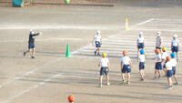 スポーツ(中)クラブも校庭でおもいっきりドッジボールを楽しんでいました。床工事で体育館が使えませんが、工夫して活動しています。
