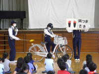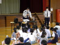 交通安全に対する関心を高め、安全に行動する態度や習慣を養う目的で交通安全教室を実施しました。本校の交通指導員 吉田さんを中心に、市内他校で活動されている交通指導員さんにもご来校いただき、お話をしていただきました。