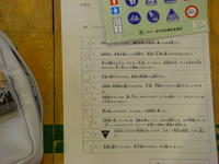 4年生の交通安全教室では、所沢警察署の方を講師に招き、座学とテストを受けました。テストに合格すると、自転車運転免許を取得することができます。みんな、真剣に話を聞き、テストに挑んでいました。