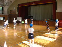 バドミントンクラブでは、ネットを挟んでラリーの練習をしています。