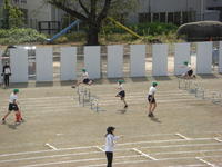 今日の2時間目には、3年生と6年生が校庭でハードル走を行っていました。同じハードル走でも3年生はミニハードルで、発達段階に合わせて学習内容や使う道具も変わります。